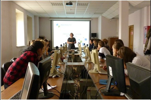 Начальник отдела кадров Ирина Бойник объяснила специфику государственной гражданской службы. Галина Чумичкина – начальник отдела эксплуатации информационных систем, технических средств и каналов связи подробно описала алгоритм работы с электронными сервисами Росреестра, а также перечислила перечень услуг, которые может получить каждый гражданин РФ с помощью сайта rosreestr.ru.