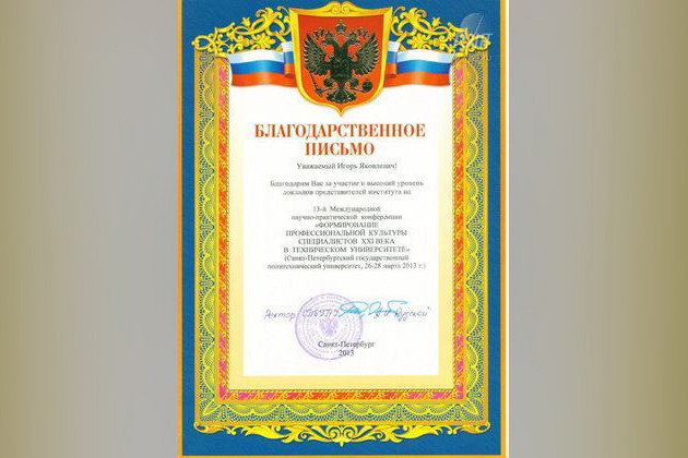 27-28 марта в Санкт-Петербургском государственном политехническом университете при поддержке Министерства науки и образования РФ состоялась 13-я Международная научно- практическая конференция «Формирование профессиональной культуры специалистов XXI века в техническом университете».